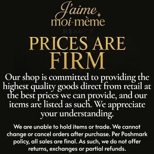 We are unable to trade or hold products. All sales are final per Poshmark, therefore we are unable to accept returns or exchanges. We are unable to cancel or change your order after purchase. please note cosmetics are sold by weight and not volume. Each listing is for ONE product only.