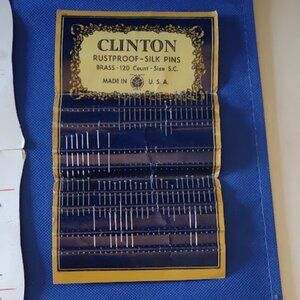 CLINTON BRASS STRAIGHT PINS FOR PINNING SILK MATERIAL WITHOUT SNAGGING, RUSTPROOF, MADE IN THE USA ARIGINSL PRICE 10 CENTS ORIGINALLY 120 PINS NOW HOLD 62 SIZE SC