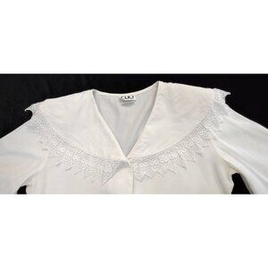 CLIO 90's Vintage Ivory Lace Collared Blouse Shirt Top Size M/L Pearl Bottoms
