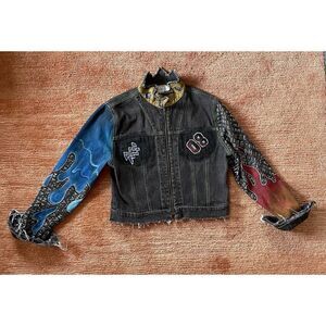 CLIO PETITES painted Women’s Denim Zippers Jacket Size 8