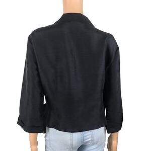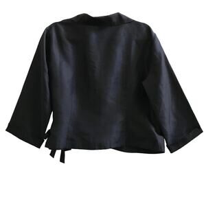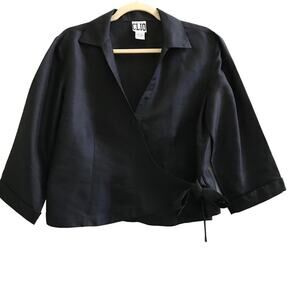 CLIO Silk Wrap Tie Blouse Women L Black Classic Business Retro Whimsygoth Y2K