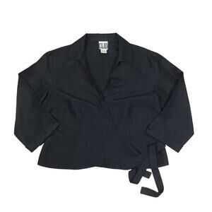 CLIO Silk Wrap Tie Blouse Women L Black Classic Business Retro Whimsygoth Y2K Feminine