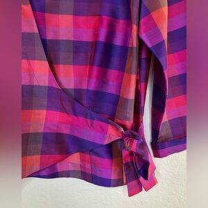 CLIO Vintage Retro 100% Silk Tartan Wrap Top Purple, Pink Size: Small