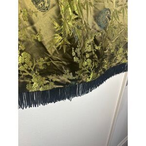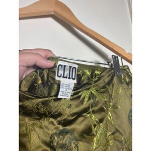 CLIO deadstock VTG Satin Skirt Size 14 Olive Green Asian Inspired Beaded Fringe
