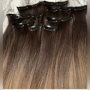 CLIP IN HAIR EXTENSIONS BALAYAGE BLONDE DARK ROOTS 22 in Straight hair
