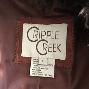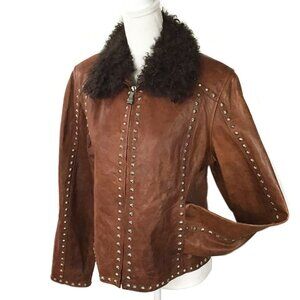 CLIPPER CREEK Stud Faux Fur Distressed Leather Jacket in excellent preloved condition, no rips or tears.