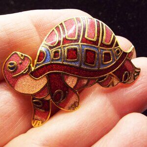 CLOISONNE RED AND PINK TURTLE TORTOISE LOOKING TO SIDE PIN 19
