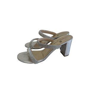 CLORINDA ANTINORI Silver Leather Rhinestone Sandals Size 7