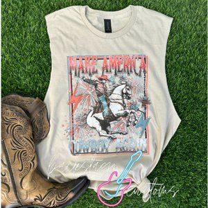 🔴CLOSE OUT: Make America Cowboy Again Muscle Tank