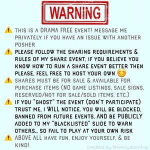 @emilydaehtop thank you so much! I appreciate it. Do you have a share event or tag list? If so, would you add me please?
