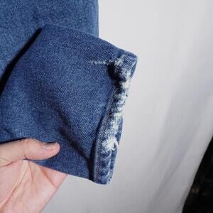 Good overall condition, but there is distressing throughout and some slight oil stains on back. Size listed is what's on tag. Please see photos for details and measurements.