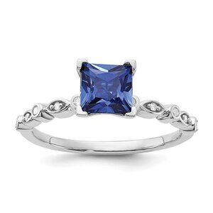 925 Sterling Silver Created Blue Sapphire and Diamond Ring, size 7