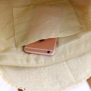 This is no ordinary beach bag! Beautifully hand woven and unique, this trendy bag will keep your belongings safe while looking so chic! · Handmade Raffia Woven Straw · Polyester Lining · Inside Zipper and Pocket · 19 inch x 16 inch · 10.5 inch Strap ** This is the cream color as shown in photos 1-4. Beige is also available in a smaller size! ** tags: beach tote bag raffia straw woven
