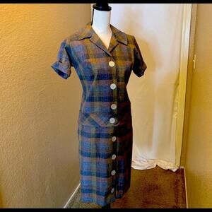 CLOSET CLEAR OUT! Vintage Drop Waist Front Button Subtle Plaid Dress