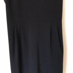 Gorgeous black dress from Banana Republic. Sleek and simple v-neck from, pleated skirt, and bow tie in the back. Only worn once. In perfect condition!! So sophisticated. Sadly does not fit me anymore. From a smoke and pet free home.