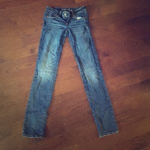 Skinny leg style, size 0. Good condition, a little fraying at the bottom of one leg. No stains or rips. ~Shoot me an offer~