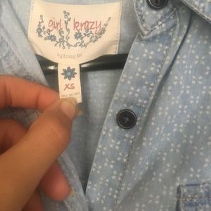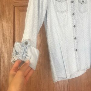 Versatile denim-like button down. Material is cotton. Gently worn. ๐พall items pictured are for sale, check out my closet for details ๐พ bundle and save ๐พ all items come washed and fur free ๐พ๐ถ๐๐๐