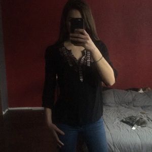 Excellent condition. Loose fitting blouse, button feature at the end of each sleeve.