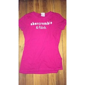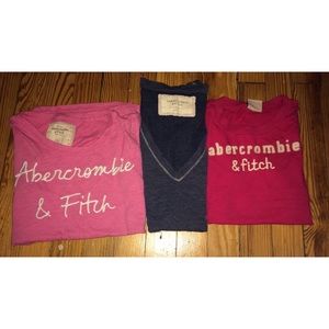 - 1 dark pink with white writing (from Abercrombie Kids as XL but fits S in Abercrombie & Fitch)