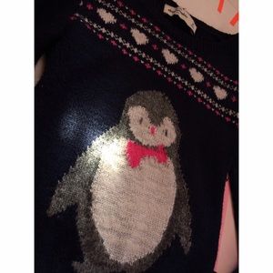 Cropped Navy Abercrombie Sweater with a penguin underneath a heart design.