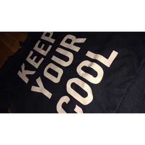 Black crewneck with white writing saying "Keep Your Cool". Very cool & cozy.