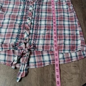 Red, white and blue plaid sleeveless button up top from Knox Rose.