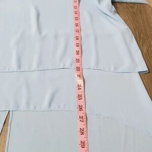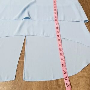 nwt work business casual fall spring summer classic layers New Chicos Solid Light Blue Layered High Low Crewneck Flowy Blouse Size 2= Large