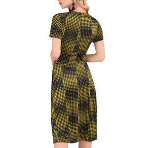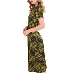 CLOSET LONDON MUSTARD YELLOW and NAVY HOUNDSTOOTH ASYMMETRIC A-LINE DRESS