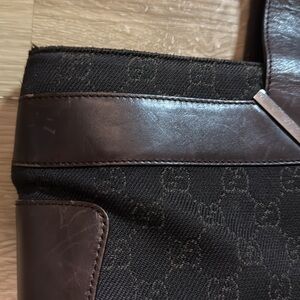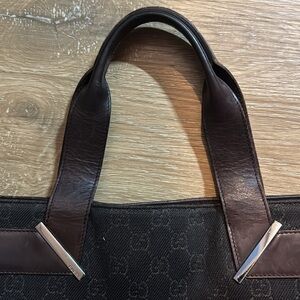 CLOSET SALE! Vtg. GUCCI Bag Authentic Dark Brown Fabric Leather-Trimmed 16x11