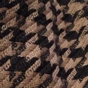 Luxurious aubergine cotton on one side and sophisticated textured pale umber and black houndstooth on the other. Wear this unique take on the infinity scarf hanging, over 1 or both shoulders. Show both sides at once or not. You have so many options the famed Chan Luu worked into this exquisite garment. Only worn once. Like new.
