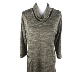 Melange Tunic Top Cowl Neck 3/4 Sleeve Stretch Brown