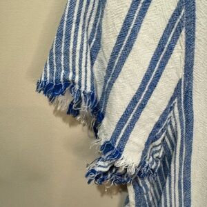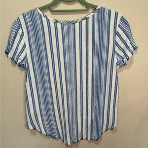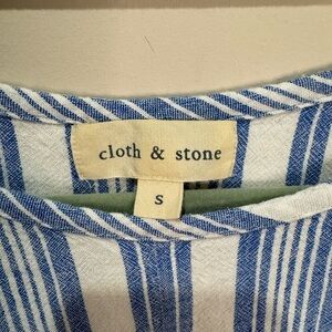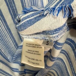 CLOTH & STONE BLUE AND WHITE STRIPED FRAYED HEM TOP SZ S