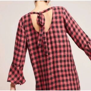 CLOTH & STONE ANTHROPOLOGIE BUFFALO PLAID SHIFT DRESS SIZE MEDIUM RUFFLED SLEEVE