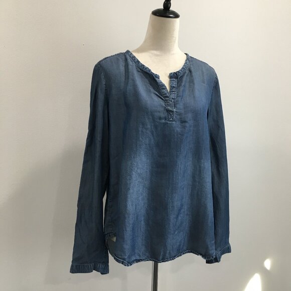 CLOTH & STONE Anthropologie Blue Cut V Neck Rounded Hem Chambray Shirt