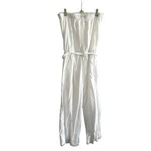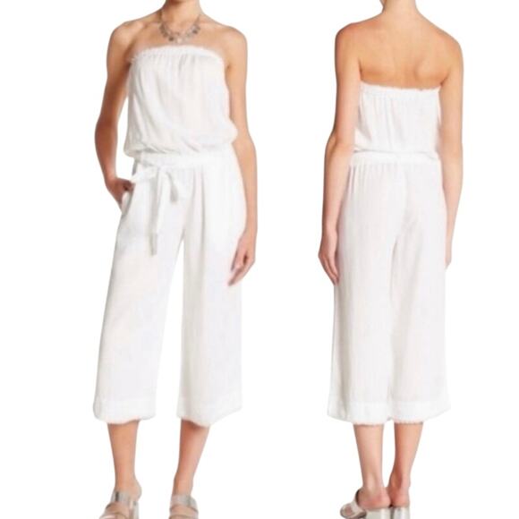 CLOTH & STONE Anthropologie White Raw-Hem Strapless Cropped Jumpsuit - Sz L