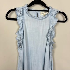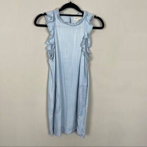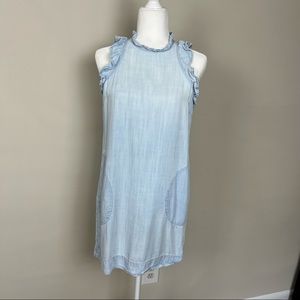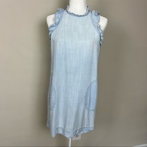 CLOTH & STONE CHAMBRAY MINI DRESS RUFFLE HALTER NECK BLUE SIZE SMALL