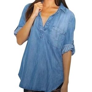 CLOTH & STONE Chambray Tencel Popover Tunic Shirt