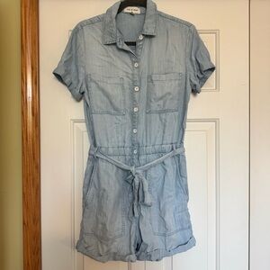 CLOTH & STONE Rolled Hem Utility Chambray Romper, Soft Tencel, Size Small