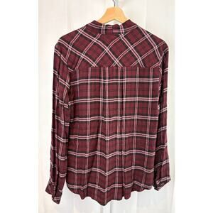 CLOTH & STONE Size M Plaid Drape Front Long Sleeve Top Soft Rayon Red Purple