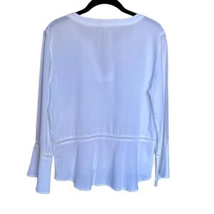 CLOTH & STONE, WHITE, HI-LOW TOP. V-NECK, LONG BELL SLEEVE. 100% TENCEL. SIZE S