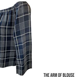 Your Purchasing A NEW WITHOUT TAG/ Not Used Women's designer Homestead Blue Plaid Long Bell Sleeve Off Shoulder Blouse Size M/ L No damage Made In USA Beautiful New Top very well made You will love it!