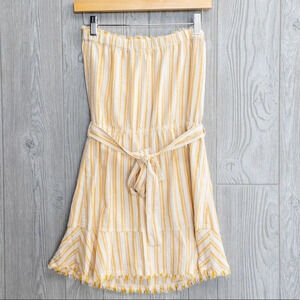 CLOTH & STONE Yellow White Stripe Sleeveless Waisted Dress Raw Edge Wome…