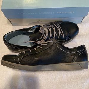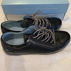 The CLOUD® Aika Brushed Sole features an Italian leather upper, contrast top stitching throughout, lace-up and side zip closure, round-toe silhouette, and flexible rubber outsole.