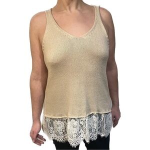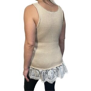 CLOUD CHASER - Cream And White Lace Extra Long Sleeveless Tank Sweater