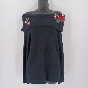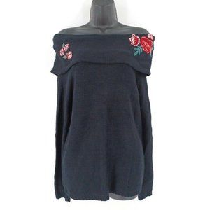 CLOUD CHASER Juniors Sz S Off-the-Shoulder Embroidered Floral Sweater Jet Black