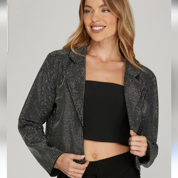 CLOUD TEN Jones Studded Cropped Blazer. Black Silver Studded. Size Small
