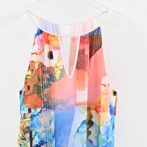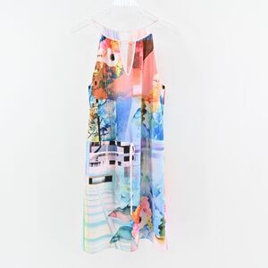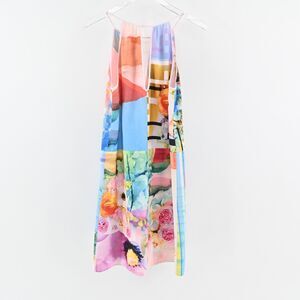 CLOVER CANYON Dress Size S Fluorescent Rose Print Mini Sleeveless Tie Waist