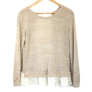 CLU + WILLOUGHBY OPEN KNIT BACK BOW LACE SWEATER