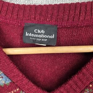 CLUB INTERNATIONAL MEN'S V-NECK SWEATER – MAROON MULTICOLOR – SIZE S/P – VINTAGE 80s/90s