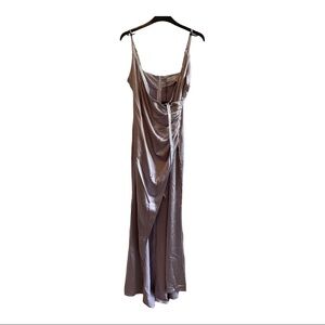 Club L London SERENE BRIDESMAID TAUPE SATIN WRAP FRONT MAXI DRESS. NWT.
